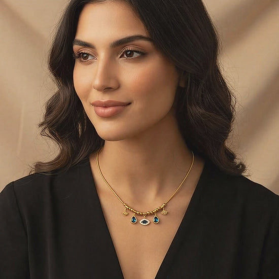 Classic Stylish Geometric Stainless Steel Evileye Beaded Necklace